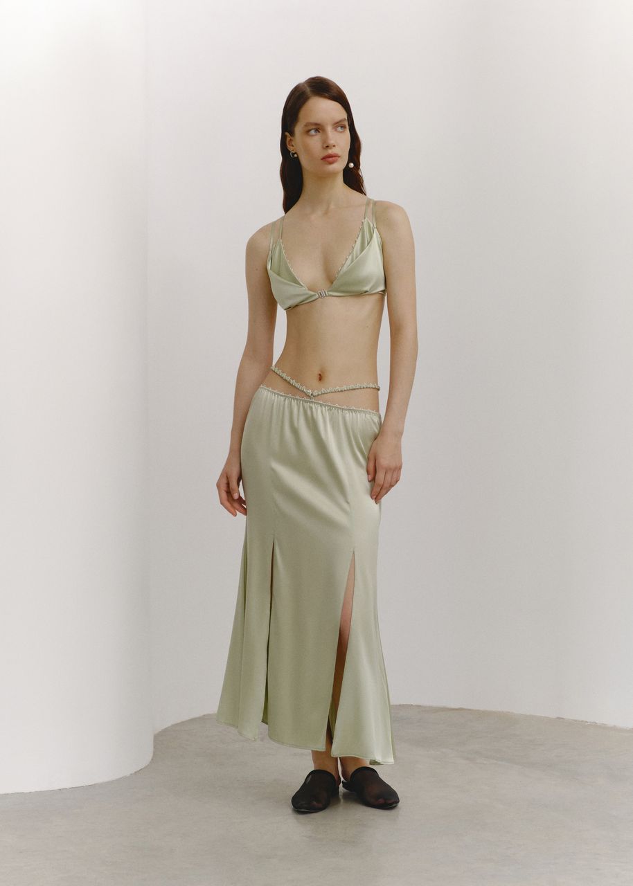 Працюючи над новою колекцією OUN дизайнерка бренду Вікторія Крутікнадихнулася власним досвідом у дизайні інтер’єрів та архітектурі. Перетворивши роки спостережень за тим як на перший погляд незвичні форми, лінії і кольори об’єднуються у гармонійні композиції, Вікторія змогла втілити схожі структурні принципи у жіночому одязі.