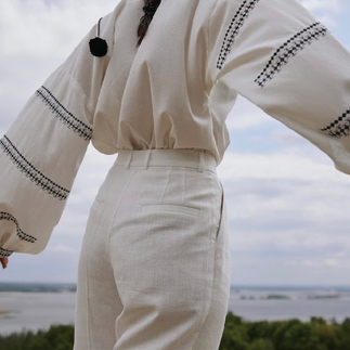 У колекції — чотири символічні одиниці:жіноча сорочка, лаконічна силуетна сукня, чоловіча сорочка, та прикраса «Шипшина» — ніжний талісман, що поєднує жіночність і силу. На кожному виробі — вишитий особливий орнамент, створений за мотивами вишивки пані Марії