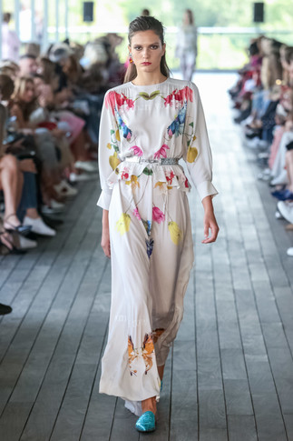 Кажется, что сказочность и хрупкая женственность, которые Ольга Навроцкая поддерживает во всех своих коллекциях, этим сезоном достигла апогея. Но не стоит видеть в NAVRO исключительно эфемерные платья: дизайнер в который раз доказывает, что нежность в женщине может идти в паре со смелостью — отсюда джинсовые элементы, шляпы и брючные костюмы. Особенно интересно рассматривать вещи в деталях. Принты из сиреневых веток и птичек, например, легко было обнаружить и раньше. А вот о том, что на платьях и брюках тоже могут быть четверостишие, которые дизайнер придумала сама: "One day your naked heart will find true love and peace, and glory will returnto happiness and dreams" мы ничего не знали. Сюрприз официально признаем приятным.