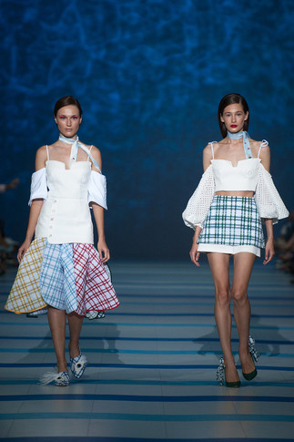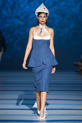 В новой коллекции Кати Сильченко девушки становятся не теми героинями, которые ждут любимых из странствий, грустно промокая платочком слезы на берегу, а морскими волчицами. Отправляются в плавания, покоряют моря и не представляют жизни без опасностей и новых вызовов. Катя Сильченко никогда не хотела видеть женщин слабыми созданиями — ее восхищают только сильные духом.Потенциальных хитов и street style-киллеров здесь много: это двусторонний кейп, стилизованном под капитанский, и моряцкий шапочки, и, рубашки с рукавами, напоминающими раздуваемые ветром паруса, и наконец, вязаные тельняшки. Разумеется, главным притом коллекции стала полоска. Отличной получилась и джинсовая линия. На этот раз за деним отвечают платья и отличный комбинезон с ярким поясом.