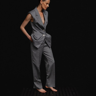 У колекції переважають природні матеріали — вовна, шовк, жакард. Їхня фактура та рух створюють відчуття спокою й балансу, що відображено в лаконічних силуетах, м’яких лініях і стриманій палітрі відтінків. Кожен образ колекції продуманий до деталей і підкреслює поєднання строгості та ніжності, властиве естетиці бренду